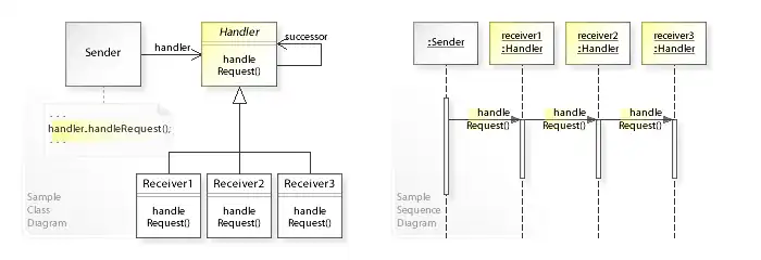 shows the run-time interactions: In this example, the Sender object calls handleRequest() on the receiver1 object (of type Handler).