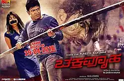 Chakravyuha (transl.Labyrinth) is a 2016 Indian Kannada-language vigilante action film written and directed by M. Saravanan and produced by N. K. Lohith under the Sunshine Creations banner. An adaptation of Saravanan's own Tamil-language film Ivan Veramathiri, the film stars Puneeth Rajkumar, Arun Vijay and Rachita Ram, while Abhimanyu Singh, Sadhu Kokila, Bhavya, and Rangayana Raghu[1] play supporting roles. Thaman S composed the film's score and soundtrack.