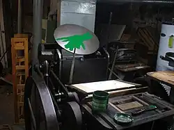 There are three main generations of the Chandler & Price press, all distinguished by the style of the flywheel: Old Style (1884-1914; wavy spokes), New Style (1911-1964; plain spokes), or Craftsman (1921-1964; solid flywheel). The New Style made by Chandler & Price was such a popular press that The Practice Of Printing: Letterpress and Offset by Ralph Polk, the standard textbook for thousands of high school printing programs in the middle of the 20th century, used the press as its example when teaching students the basics of press operation.[1]