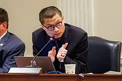 After graduating, Wu worked in the private and public sectors, specializing in data science, machine learning, artificial intelligence, quantum computing, cybersecurity and enterprise risk management.[4] Wu represented the River Hill community of Columbia, Maryland on the Columbia Association's board of directors until 2018,[6] and served as a board member of the River Hill Village Association from 2012 to 2018.[7] During this time, Wu was instrumental in initiating Columbia's sister city agreement with Liyang.[5][8]