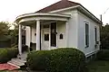 It was built in 1912 in a Colonial Revival style by J.W. Heartfield. The plan is nearly square, 20' x 24', with clapboard siding and corner beads. There is a hipped roof that is now asphalt, but was once shingled in cedar. The front elevation exhibits a semi-circular portico supported by two Doric columns capped with oversized capitals and two pilasters.
