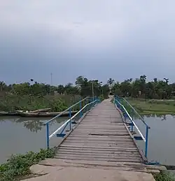 Wooden bridge at Char Jadubati over Jamuna River (West Bengal).