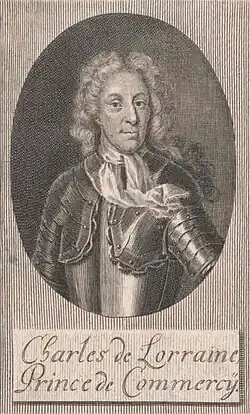 Charles de Lorraine, Prince de Commercy (11 July 1661 – 15 August 1702), was a field marshal of the Holy Roman Empire and a military advisor to Prince Eugene of Savoy.[1] He acquired military prominence after leading imperial troops in the Great Turkish War, in the Nine Years' War, and the War of Spanish Succession.