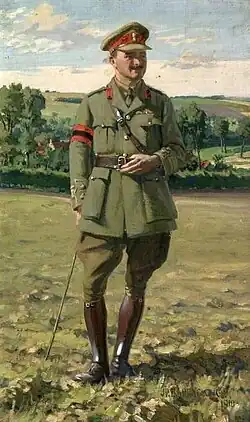 Broad served in the First World War in France and Belgium, mostly on the staff, to which he had been seconded in April 1915.[6][5] He was awarded the Distinguished Service Order in June 1917, "for distinguished service in the field."[7] He transferred to the Royal Tank Corps in 1923[1] and became commander of the 1st Brigade of the Royal Tank Corps in 1931 before being appointed General Officer Commanding-in-Chief for Aldershot Command in 1939.[5] He became General Officer Commanding-in-Chief for the Eastern Army in India in 1940: in that capacity he welcomed the 7th Armoured Brigade back from Burma:[8] he retired in 1942.[5]