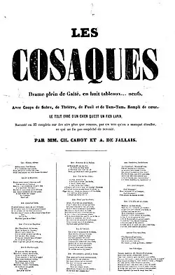 - Les Cosaques, drama in 8 tableaux, with de Jallais, 1857