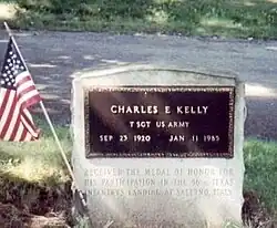 Charles E. Kelly (September 23, 1920 – January 11, 1985) was a United States Army soldier and a recipient of the United States military's highest decoration for valor—the Medal of Honor—for his actions in World War II. Kelly was the third enlisted man to be decorated with the Medal of Honor for action on the European continent, after S/Sgt Maynard H. Smith, 306th Bomb Group (St Nazaire and Brest May 1, 1943) and Flight Officer (a temporary, non-commissioned warrant rank) John C. "Red" Morgan, 92nd Bomb Group, Hanover, July 28, 1943.