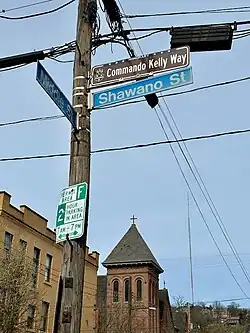 In 1987, the Oakdale Army Support Element in Oakdale, Pennsylvania was redesignated the Charles E. Kelly Support Facility.[7] In 2024 the City of Pittsburgh dedicated Shawano Street (where Kelly grew up and returned home from the front) "Honorary Commando Kelly Way".
