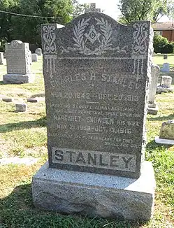After a two-month illness, Stanley died of heart and kidney trouble on December 20, 1913, while asleep at his home in Laurel, Maryland.[6] His burial site is in section E. 108 of Ivy Hill Cemetery in Laurel.[1]