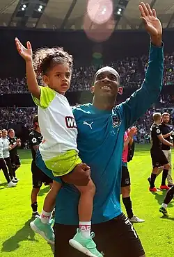 Kaboré with his daughter after his last game for FC Krasnodar in 2019