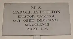 St John the Baptist Church, Hagley, memorial to Bishop Charles Lyttelton