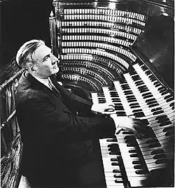 Charles Marie Courboin (1884–1973) was a Belgian–American organ virtuoso who enjoyed popularity during the 1920s. During this time he was engaged by department store magnate Rodman Wanamaker to oversee the second enlargement of the Wanamaker Organ. He added the huge string and orchestral sections bringing it to 461 ranks and 28,482 pipes. He also served as Director of Music for St. Patrick Cathedral, New York City from 1943 until his retirement in 1968.[2][3]