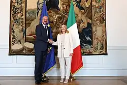 Michel with Italian Prime Minister Giorgia Meloni in Rome, 11 April 2024
