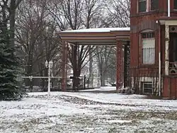 The elegant porte-cochere on the home's south face.