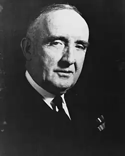 He was promoted to rear admiral with date of rank March 1, 1933[7] while serving as chief of staff to Admiral David F. Sellers, who was Commander Battleships, Battle Force, U.S. Fleet from 1932 to 1933 and Commander in Chief, U.S. Fleet from 1933 to 1934. Snyder was commandant of the Portsmouth Navy Yard from 1934 to 1935, then commanded a heavy cruiser division of the Scouting Force, followed by a battleship division of the Battle Force, before serving as President of the Naval War College from January 2, 1937 to May 27, 1939.[8] He returned to sea in 1939 as Commander Battleships, Battle Force, with the temporary rank of vice admiral.