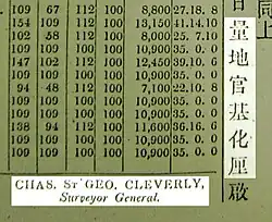 Charles St. George Cleverley or Cleverly (Chinese: 基化厘 or 急庇利; 8 July 1819 – 14 August 1897) was the second Surveyor General in Hong Kong. He worked under the Colonial Secretary and was responsible for public infrastructure, town planning and land auction.