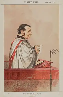 Vaughan was a well-known Broad Churchman, an eloquent preacher and an able writer on theological subjects, his numerous works including lectures, commentaries and sermons.[4] His greatest contribution to the Church of England was the help he gave to over 400 graduates preparing themselves for Ordination. These men became known as 'Vaughan's doves'. Eighteen of them became Bishops, and two of them Archbishops.