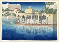 In 1913, with financial backing from his wife's well-to-do family, the Bartletts traveled to India, Ceylon, Indonesia, China, and Japan. He arrived in Japan in 1915, where he met woodblock print publisher Watanabe Shōzaburō (1885–1962), who was a major force in early 20th-century Japanese art (shin-hanga). In 1916 Watanabe published 21 woodblocks from Bartlett's designs, including six prints of Japanese landscapes. In 1917, Bartlett and his second wife left Japan for England; however, they stopped off in Hawaii, where they remained—never returning to England. He did visit Japan in 1919, where he created sixteen shin-hanga prints for Watanabe.