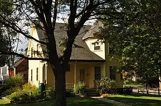 The Charles Wells House is a historic house in Reading, Massachusetts. The two-story Queen Anne Victorian wood-frame house was built in 1894 by Charles Wells, a New Brunswick blacksmith who married a Reading woman. The house is clad in clapboards and has a gable roof, and features a turret with an ornamented copper finial and a front porch supported by turned posts, with a turned balustrade between. A small triangular dormer gives visual interest to the roof above the porch. The house is locally distinctive as a surviving example of a modest Queen Anne house, complete with a period carriage house/barn.[2]