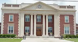 The Charlton County Courthouse is located in Folkston, Georgia. It is in the Neoclassical style and was constructed in 1928 out of brick, stone, and concrete. The construction cost was $46,000 and the clock cost and additional $3,000. The total cost of the project was $54,000. It is the fourth courthouse built for this county and is built on the site of the previous courthouse, which was built in 1902 and burned in 1928.[2]