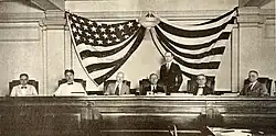 In the 1930s he worked for the American Federation of Labor and the Reconstruction Finance Corporation.[1] As counsel for the AFL he supported the introduction of laws to defend labor rights, and helped to draft the National Labor Relations Act of 1935.[3] In 1938 Ogburn supported William Green's attempts to maintain the unity of the AFL and resist the breakaway Committee of Industrial Organizations (COI) union. In what has been described as "an incredible display of legal gymnastics" he argued that the AFL's Executive Council did have the power to suspend the COI, contrary to the plain wording of the AFL's constitution.[4] The result was the creation of the independent Congress of Industrial Organizations.