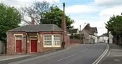 The Station Hotel, now converted to a funeral home, is the only remaining structure of the small terminus constructed at this location.
