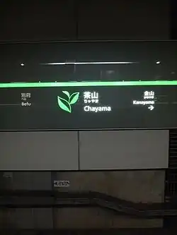 Chayama Station (茶山駅, Chayama-eki) is a subway station on the Fukuoka City Subway Nanakuma Line in Jōnan-ku, Fukuoka in Japan. Its station symbol is a picture of a tea shoot in green.