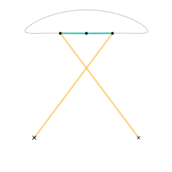 Consequently, we can write the motion of point P, using the two points defined above and the definition of the middle point.