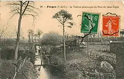 - Fruges - 15 kilometres (9.32 mi) from Anvin. A type 1 station. A workshops and depôt were located here, shared with the CF du ARB. A tannery was served via a siding. Elevation 96 metres (315 ft).[53]