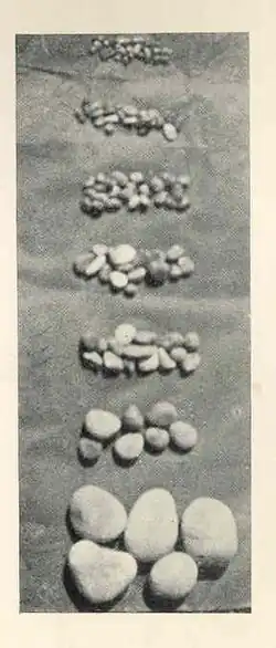 - ^ a b Carr, A. P.; Gleason, R.; King, A. (1970). "Significance of pebble size and shape in sorting by waves". Sedimentary Geology. 4 (1–2): 89–101. Bibcode:1970SedG....4...89C. doi:10.1016/0037-0738(70)90005-9.