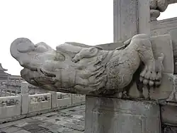 - 螭首; chīshǒu; 'hornless dragon + head' or 螭頭; chītóu; 'hornless dragon + head'—"an architectural adornment; gargoyle"