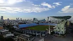 The stadium was the home stadium of SHB Đà Nẵng of the V-League until 2016, when the club moved to the Hòa Xuân Stadium. The stadium was due to be demolished in early 2018 to make way for two 33-storey blocks of flats,[2] but that effectively never happened and the stadium lies in an abandoned state, with trees growing in the stands.[3]