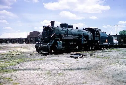 ![]() Chicago, Burlington and Quincy No. 4963 sitting in storage at a Galesburg, Illinois roundhouse, in 1967 | |||||||||||||||||||||||||||||||||||||||||||||||||||||||||||||||||||||||||||||