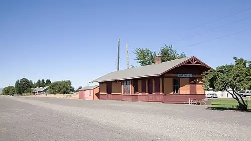 The depot is a rectangular, single-story, wood-frame building. It was built to serve the local community by shipping agricultural products. A small rail yard served the potato packing houses. In 1919, after the railroad electrified, an electric substation and operators' houses were built adjacent to the depot. In 1974, the substation was razed, and the operators' houses were sold to private individuals. After the railroad abandoned the Pacific Extension in 1980, the depot was taken over by the State of Washington and is now part of the Iron Horse State Park, a rails-to-trails initiative.