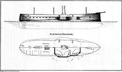 Almirante Cochrane was a central battery ship of the Chilean Navy in the late nineteenth century. She was built, like her twin, Blanco Encalada, in the UK in 1875. She participated in the War of the Pacific, with her most prominent action being her victory over the Peruvian turret ram Huáscar in the Angamos naval battle. Almirante Cochrane was part of the forces that defeated President José Manuel Balmaceda in the Chilean Civil War of 1891.