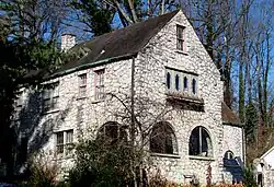 Circa-1925 Tudor Revival-style house on Mary Street, clad in Tennessee marble