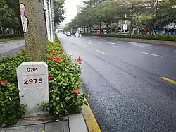 Milestone at the end of National Highway 205 at Sai Bu Junction, East Gate, Shenzhen