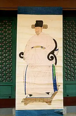 Cizang (慈藏), a Silla monk, studied Vinaya in China and when he returned to Silla, he promoted Dharma in 643.[9] Cizang also contributed to the change of Silla's imperial or official dress for the customs of the Tang, which also marked the beginning of Chinese clothing rituals in Silla.[9] During the reign of Queen Jindeok, Kim Chunchu adopted the Tang dynasty dress and encouraged the Silla kingdom to adopt Chinese administrative practices.[10] The danryeong was thus introduced from the Tang dynasty by Kim Chunchu in the second year of Queen Jingdeok's rule.[11]