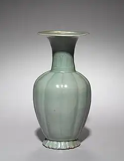 Vase in the form of a melon, Goryeo celadon, d. 1100. This vase shows the stylistic influence of the Qingbai ware.[62]