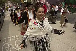 The Spanish shawls, also known as Manila shawls and mantón de Manila, have become traditional accessory for women in Spain and Latin America and is also a crucial feature in Flamenco dance costume.[49] The term Manila shawl itself is a misnomer, which appeared when the America-European people got confused concerning the origins and provenance of the shawl, thus leading to a misattribution to the Philippines.[50]: 252  These shawls of Chinese origins then became identified with Spanish ladies.[51]: 137