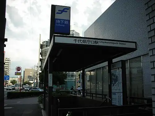 Chiyo-Kenchōguchi Station (千代県庁口駅) is a subway station on the Fukuoka City Subway Hakozaki Line in Hakata-ku, Fukuoka, Fukuoka in Japan. Its station symbol is the face of Ebisu in violet. The Tohka-Ebisu Shrine is near this station.