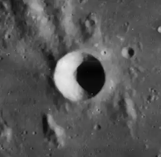 Chladni is a small lunar impact crater that lies near the northwest edge of Sinus Medii, in the central part of the Moon.