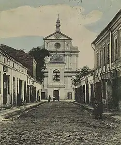 Before the Second World War, over 80% of the 12,000 inhabitants were Jews.[6] After capturing the town in 1939 the Germans slowly discriminated against the Polish and Jewish population, which swelled during the war as Jews fled from other towns arrived at Chmielnik. Over several months Germans transported Jews to concentration camps, mainly Treblinka, where they were exterminated. The Germans also deported over 1,600 people for forced labor, and, still in Chmielnik, carried out executions of Poles and Jews from the town as well as from other places. The Polish resistance movement was active in the area, secret Polish teaching was organized.