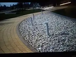 The Wall of Remembrance is a celebration of the lives of the martyrs of South Africa’s struggle for the freedom of all humanity. Their political lives reflects principles of democracy, striving towards transparency and dialogue. To demonstrate the martyrs’ unflinching belief in this goal, foundation of their belief in justice, which formed the basis for the new South Africa.[4] The concrete podium is elevated to give the heroes appropriate recognition and pay tributes to their sacrifice. The podium is anchored by a solid granite wall, lending mass and solidity to the structure. The wall houses the name of the structure as well as a map of the routes. Three glass boxes are placed on the podium as a symbol of democracy, transparency and inclusivity. The form is a reference to the existing needle commemorating the lives of fallen members of South African Services and are in close proximity to engage dialogue. The names of all the fallen heroes are sand-blasted on the glass walls and visitors are invited to wall around the glass boxes and share the history of heroes that helped shaped the new political South Africa. Natural materials are used throughout the project, to create texture and an organic Earth-like feel.