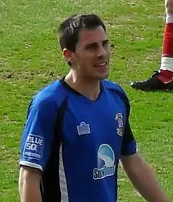 Smith committed his future to the club over the summer of 2006 and captained the team during the 2006–07 pre-season.[66][67] His first appearance of the season came in the opening match, a 1–0 victory away to Barrow on 12 August 2006,[68] before scoring from inside the six-yard box in a 2–0 victory away to Worksop on 22 August.[69] During August 2006, Smith started a spell of playing as a central midfielder after Des Lyttle moved into defence.[70] After receiving his fifth yellow card of the season in a 3–2 home defeat by Harrogate on 6 October 2006, he was suspended for Worcester's match against Hucknall on 21 October 2006.[71] He signed a new one-and-a-half-year contract with Worcester in December 2006, contracting him to the club until the summer of 2008.[72] Smith received a two-match suspension after picking up his 10th booking of the season in a 3–1 home win over Hinckley United on 20 January 2007.[73][74] This meant he missed matches against Welling United and Scarborough, before scoring on his return in a 3–3 home draw with Vauxhall Motors on 12 February 2007.[60][75][76] He missed a match against Alfreton Town on 9 April 2007 to rest an ankle, despite playing through some previous matches with this complaint.[77][78] Smith returned in the following match, a 2–1 home win over Worksop on 14 April 2007, as a 69th-minute substitute, despite not being fully fit.[79] He completed 2006–07 with 47 appearances and five goals,[60] and was named Worcester's Player of the Year.[80] Throughout the season, he often deputised as captain when Lyttle was absent.[81]