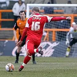 Turner was born in Burnley and educated at St Theodore's RC High School in the town.[2] He started his footballing career as a seven-year-old with local junior side Brierfield Celtic, and later St Joseph's in Accrington.[2] In 2009, Turner joined the youth system at Burnley.[2] Turner spent seven years in the Centre of Excellence, until, he was released at under-16 level for being too small.[2] He was then invited for a trial at Accrington Stanley, where he successfully started a two-year scholarship scheme with the club in 2006.[2] Turner made his professional debut whilst still a scholar in February 2008, coming on as a substitute for Jay Harris in the 2–0 home defeat to Wycombe Wanderers in Football League Two.[2] On completion of his scholarship in April 2010, Turner signed his first professional contract with the club on a one-year deal.[2] Turner scored his first professional goal for the club in October 2009, in the 4–0 win over Cheltenham Town. After making 22 appearances in his debut season as a professional, Turner signed a new two-year contract in June 2009.[3] Turner went on to score a crucial equaliser in a 2–1 win over Doncaster Rovers in the Football League Cup, taking Stanley through to the next round to play Premier League side Newcastle United. Turner struggled to cement a first team place in the side and in May 2011 his contract expired, and he was released after Stanley's Football League Two play-offs exit.[4]