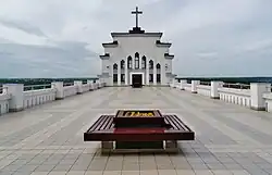 The church now features two towers: one is 70 meters high, and a lower one arises from the main altar. In the main tower's upper level there is an additional chapel. An elevator permits access to the church's roof, which affords a panoramic view of the city.