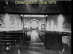 Christ Church before the 1871 addition of the chancel, and the 1881 changes to the interior