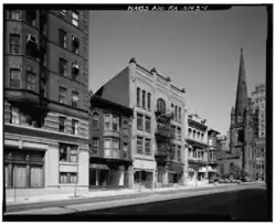 In 1873, vestry rooms were added, as were rooms for the rector and choir, and the chancel was enlarged by sixteen feet.[27] That same year, according to Montgomery, family members of the late Isaac Eckert, a former congregant at Christ Episcopal (then Christ Cathedral), presented church leaders with a gift of "a full chime of ten bells" in memory of Eckert, who had died on December 13, 1873. The chimes were subsequently installed in the church's Gothic spire.[28][29] The bells, which were manufactured by the Meneely Bell Foundry of West Troy, New York, weighed a total of 10,109 pounds, and were operated by a system of pedals.[30]