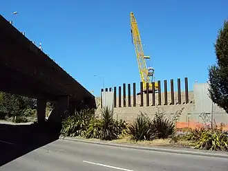 In 2012 a project was completed duplicating the existing motorway section, including a new flyover to link the motorway directly to Brougham Street.[3] At the same time, the motorway was extended from Curletts Road, where a new full interchange was built, to a new terminating roundabout at Halswell Junction Road, a total length of approximately 7.5 km from Brougham Street. A cycleway was built along the length of the motorway on both sides.[3] North of Springs Road, Halswell Junction Road was upgraded to form a two-lane undivided link from the motorway to SH 1 at Templeton.
