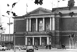 In Halle, according to Gilbert Stöck, he was also responsible for "two nationally acclaimed productions of contemporary and at the same time socialy critic operas":[21] In 1984, Der Preis by Karl Ottomar Treibmann was staged and in 1986 Candide by Reiner Bredemeyer was premiered.[22] On the occasion of the Hallische Musiktage, he repeatedly premiered works by foreign composers with the Handel Festival Orchestra, such as in 1980 Avet Terterian's[5] Symphony No. 5 and 1985 Primož Ramovš's Dialogue for Piano and Orchestra (soloist: Bettina Otto).[23] As Gilbert Stöck noted, Kluttig was also open to works by Gerd Domhardt.[21] Thus in 1982[24] whose Symphony II was premiered.[21] In 1990, he premiered Günter Neubert's orchestral music Das verschenkte Weinen. In 1990, at the Handel House, he was one of the co-founders of the Halle Music Council, as whose vice-chairman he served from then on.[25] The declining attendance figures at the Landestheater Halle in the course of the Peaceful Revolution probably ultimately led to the resignation of the Kluttig and Baumann team.[26]